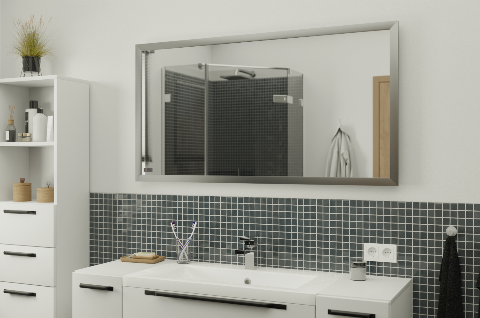 • Design: Silverfärgad aluminiumram för ett modernt, neutralt uttryck